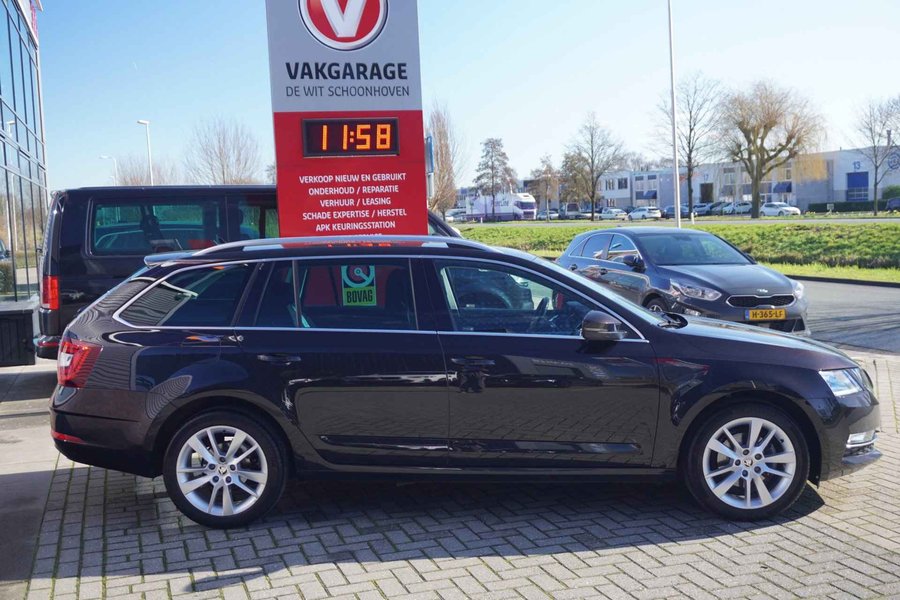 Uitmuntende prestaties, dynamische rijeigenschappen en bakken vol met rijplezier, deze Skoda Octavia Combi levert het allemaal. De aandrijving van deze Skoda wordt verzorgd door een viercilinder motor en een automatische transmissie. In de verwarmbare voorstoelen zitten is elke keer een welkom gevoel. Rijden met pit? Geen punt! De sportstoelen geven steun en stevigheid! Tot de uitrusting behoren ook 17 inch lichtmetalen velgen, LED koplampen, warmtewerend glas, in delen neerklapbare achterbank, LED-achterlichten en verstelbare lendensteunen. De meest gebruikte voertuigfuncties laten zich met behulp van uw stem bedienen. Kaartlezen is verleden tijd, dankzij het aanwezige navigatiesysteem met harde schijf. Het comfort wordt verhoogd door de aanwezige automatische airconditioning. Even de smartphone erin klikken en de draadloze telefoonlader zorgt vanzelf voor nieuwe energie. Met de DAB-ontvanger luistert u naar glasheldere digitale radio. Met parkeersensoren achter, regensensor, cruise control, dvd-systeem, automatisch dimmende buitenspiegels en lederen stuur is deze Skoda helemaal compleet. Pragmatisch en veilig als deze auto is, beschikt hij over diverse veiligheidssystemen. Ook is deze auto uitgerust met een systeem dat u waarschuwt wanneer u achter het stuur in slaap dreigt te vallen. Een kortere remweg verkleint de kans op een aanrijding. Brake assist helpt actief mee tijdens een noodstop. Bovenop deze veiligheidsfeatures heeft deze Skoda bovendien hill hold functie en bandenspanningcontrolesysteem. We kunnen ons voorstellen dat u een proefrit wilt maken met deze Skoda. Belt u ons snel?