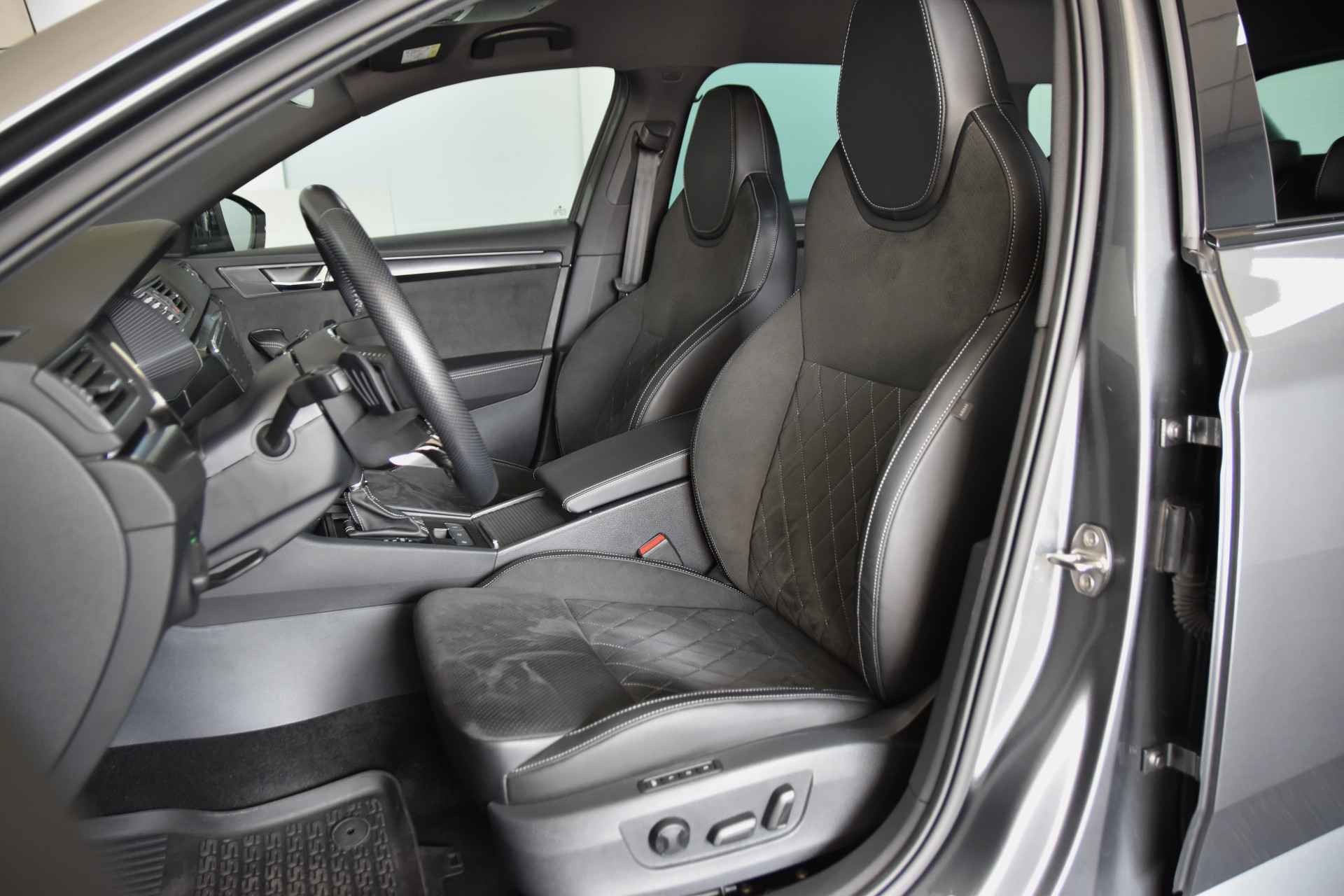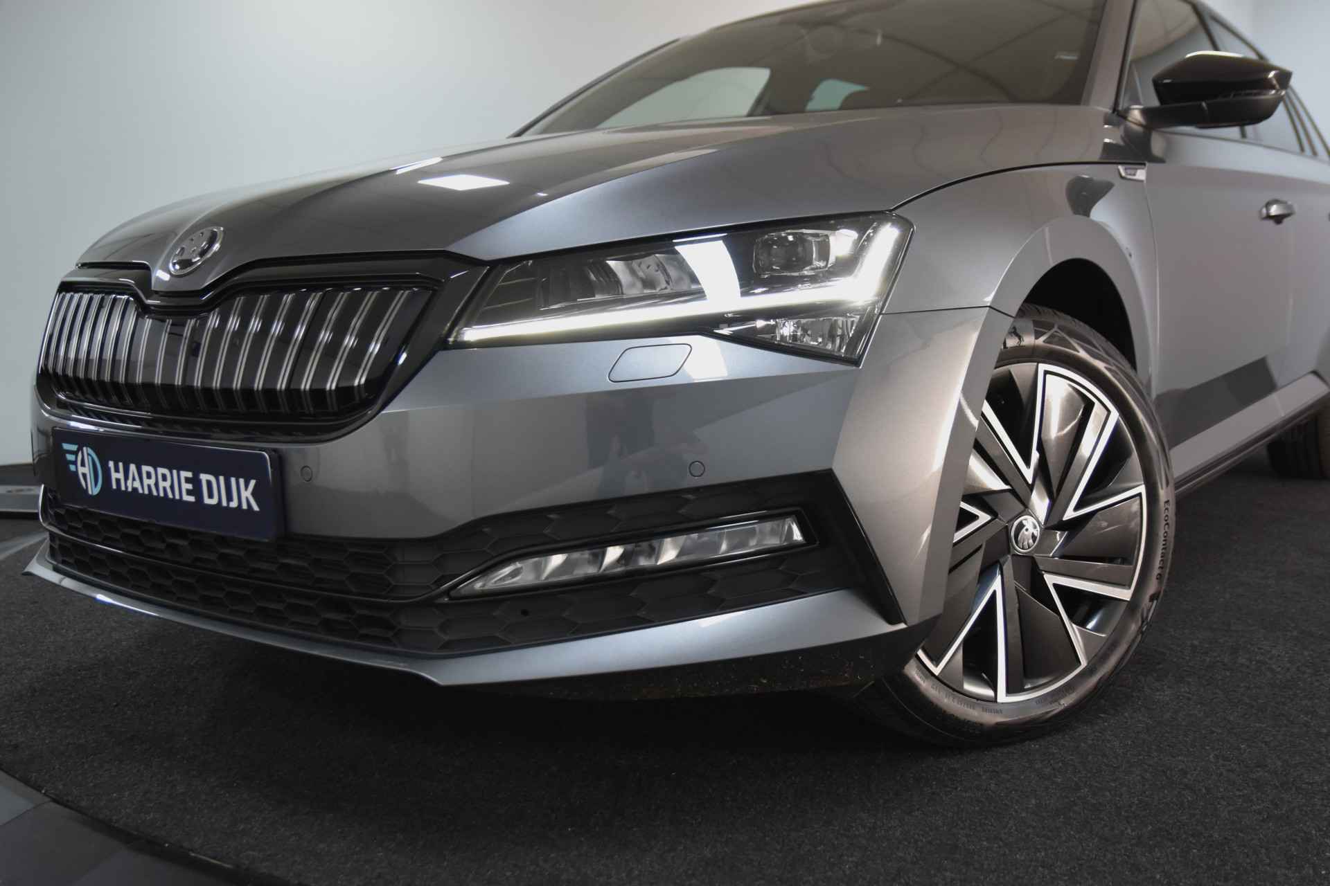 Met een auto als deze ŠKODA Superb Combi komt u absoluut goed voor de dag. Als u een laag brandstofverbruik en goede prestaties belangrijk vindt, dan bent u uitstekend bediend met de viercilinder motor. Comfort en een gevoel van luxe: dat geeft de heerlijke stoelverwarming. De elektrische achterklep opent met een druk op de knop, zodat u gemakkelijk toegang heeft tot de bagageruimte. Opvallend is de geavanceerde matrix LED-verlichting met daglichtkwaliteit. De koplampen dimmen automatisch het deel van de lichtstraal waar voor- of tegenliggers in rijden. De overige segmenten blijven aan en verlichten de weg maximaal. Bij de uitrusting van deze ŠKODA horen onder meer 18 inch lichtmetalen velgen, sportonderstel, donker getint glas achter, in delen neerklapbare achterbank, LED-achterlichten en verstelbare lendensteunen. Ervaar de wonderen van de digitale mobiliteitswereld waarbij alles wat u wenst op het digitale dashboard verschijnt. Altijd achter zicht, nooit meer nekkramp! De achteruitrijcamera maakt het supermakkelijk. Ingebouwde spraakbediening maakt het mogelijk om de auto te bedienen zonder dat uw aandacht wordt afgeleid. Ingericht op Connected Services, voor een nog veiligere en comfortabelere rit. De achteropkomend verkeer waarschuwing geeft een signaal als degene achter u te dicht op u zit. Ook handig en veilig bij het wisselen van rijbaan. De ŠKODA is standaard voorzien van: automatische airconditioning, schakelpaddles aan het stuur, DAB ontvangst, regensensor, cruise control en keyless entry. De ŠKODA Superb Combi is ook voorzien van ADAS. Deze Advanced Driver Assistence Systems fungeren als extra ogen en oren: ze houden voor u de weg in de gaten en grijpen in wanneer dat nodig is. In een noodsituatie waarschuwt forward collision warning bij een dreigende aanrijding met een voorligger. Bij concentratieverlies van de bestuurder geeft vermoeidheidsherkenning automatisch een waarschuwingssignaal. Verder is deze auto uitgerust met hill hold functie, autonoom remsysteem en bandenspanningcontrolesysteem.