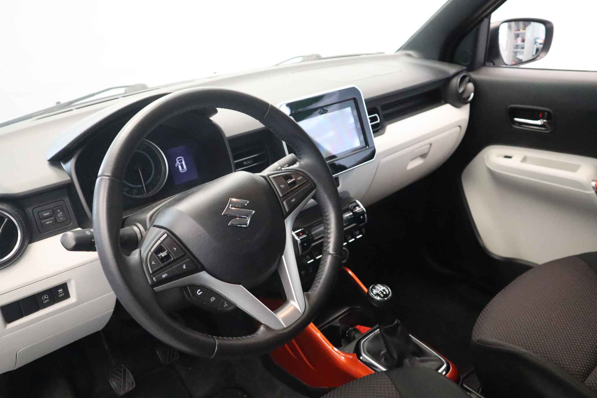 Alle technologie in de Suzuki Ignis is er op gericht om uw rit veilig en gemakkelijk te laten verlopen. Dit mooie exemplaar komt uit 2020. In deze Suzuki vindt u een benzinemotor en een handgeschakelde vijfversnellingsbak. In deze Suzuki profiteert u onder andere ook van: 16 inch lichtmetalen velgen, LED-dagrijverlichting, donker getint glas achter, in delen neerklapbare achterbank en LED-achterlichten. 'Boem is ho'? Niet met deze achteruitrijcamera. U ziet achter net zo goed als voor en krijgt een duidelijk geluidssignaal! Met de DAB-ontvanger op dit audiosysteem heeft u keuze uit talloze digitale radiozenders met de alllerhoogste geluidskwaliteit. De bluetooth audiostreaming maakt het mogelijk om muziek draadloos af te spelen. De climate control zorgt voor een prettige binnentemperatuur. Natuurlijk is er ook cruise control aan boord, waarmee u meer ontspannen en zuiniger rijdt. Ook centrale deurvergrendeling met afstandsbediening, bagage afdekhoes, boordcomputer en verstelbaar stuur horen tot de voorzieningen op deze auto. Zoals u mag verwachten van deze Suzuki Ignis is hij uitgerust met een reeks aan actieve veiligheidssystemen. Minder remweg, meer veiligheid: de Brake Assist haalt het beste uit het remsysteem als het erop aankomt. U bent mede dankzij hill hold functie en bandenspanningcontrolesysteem steeds veilig onderweg. Heeft u serieus interesse in deze auto? Bel of mail ons dan voor een afspraak.