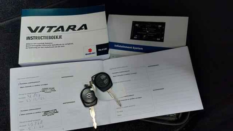 Stoere grijze Suzuki Vitara 1.4 Boosterjet Select uit 2019 met nog geen 48.000 km gereden. Voorzien van touchscreen multimedia, navigatie, achteruitrijcamera en Android Auto/Apple CarPlay voor optimaal rijcomfort. Een krachtige, betrouwbare SUV met een sportieve uitstraling! Wij leveren de Vitara gepoetst aan u af met ondeerhoudsbeurt, APK, 6 maanden Vari-garantie en een mobiliteitspas zonder meerprijs.
