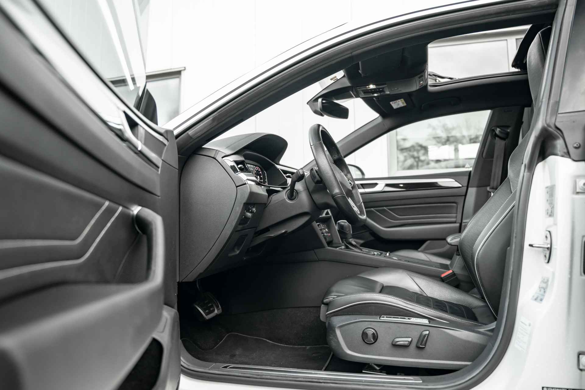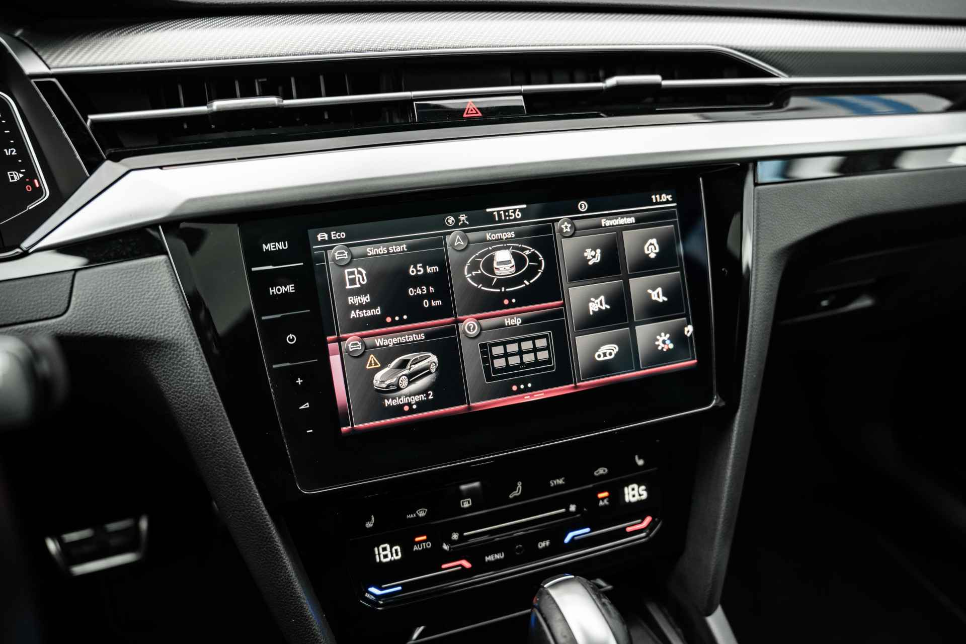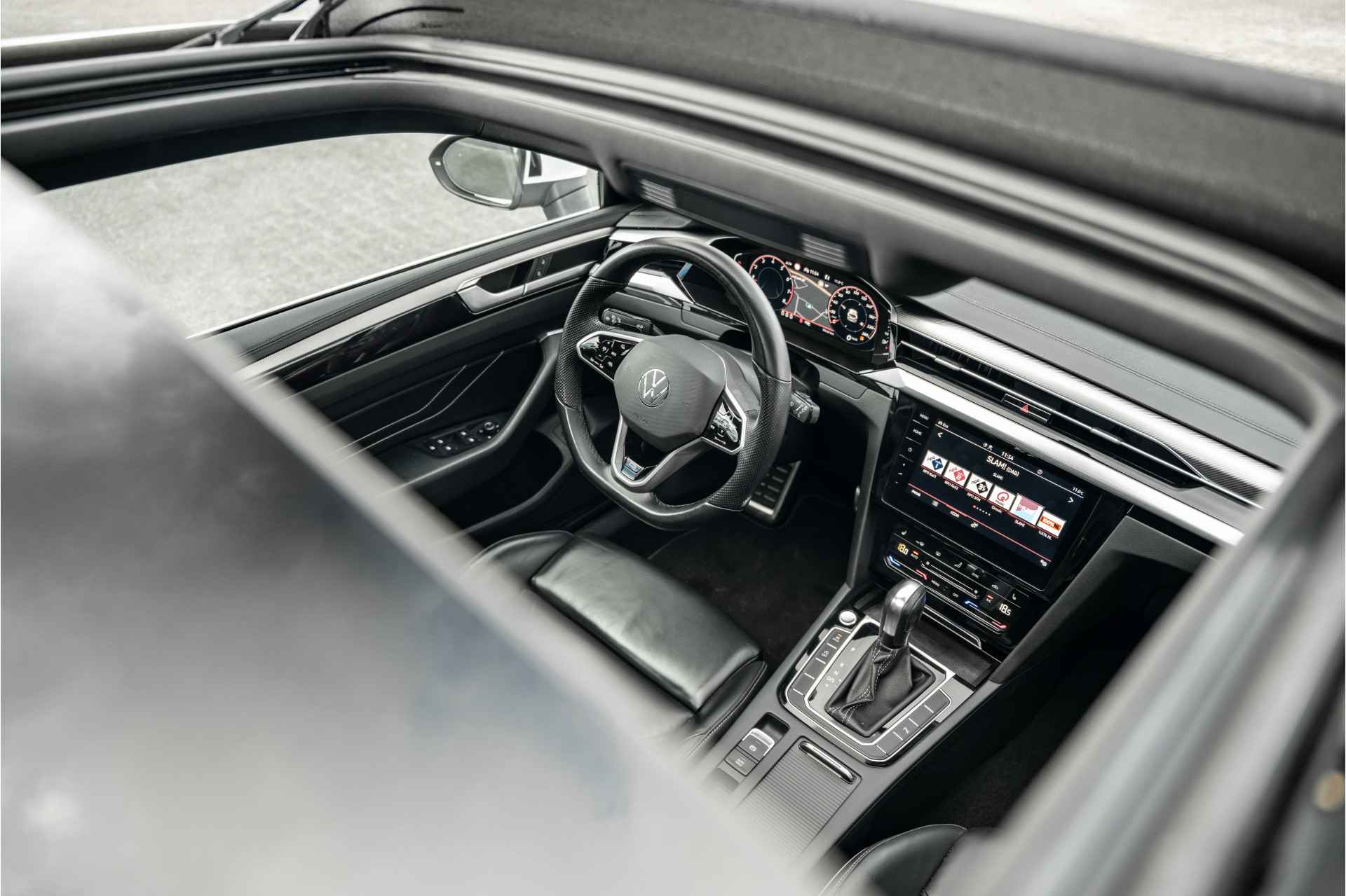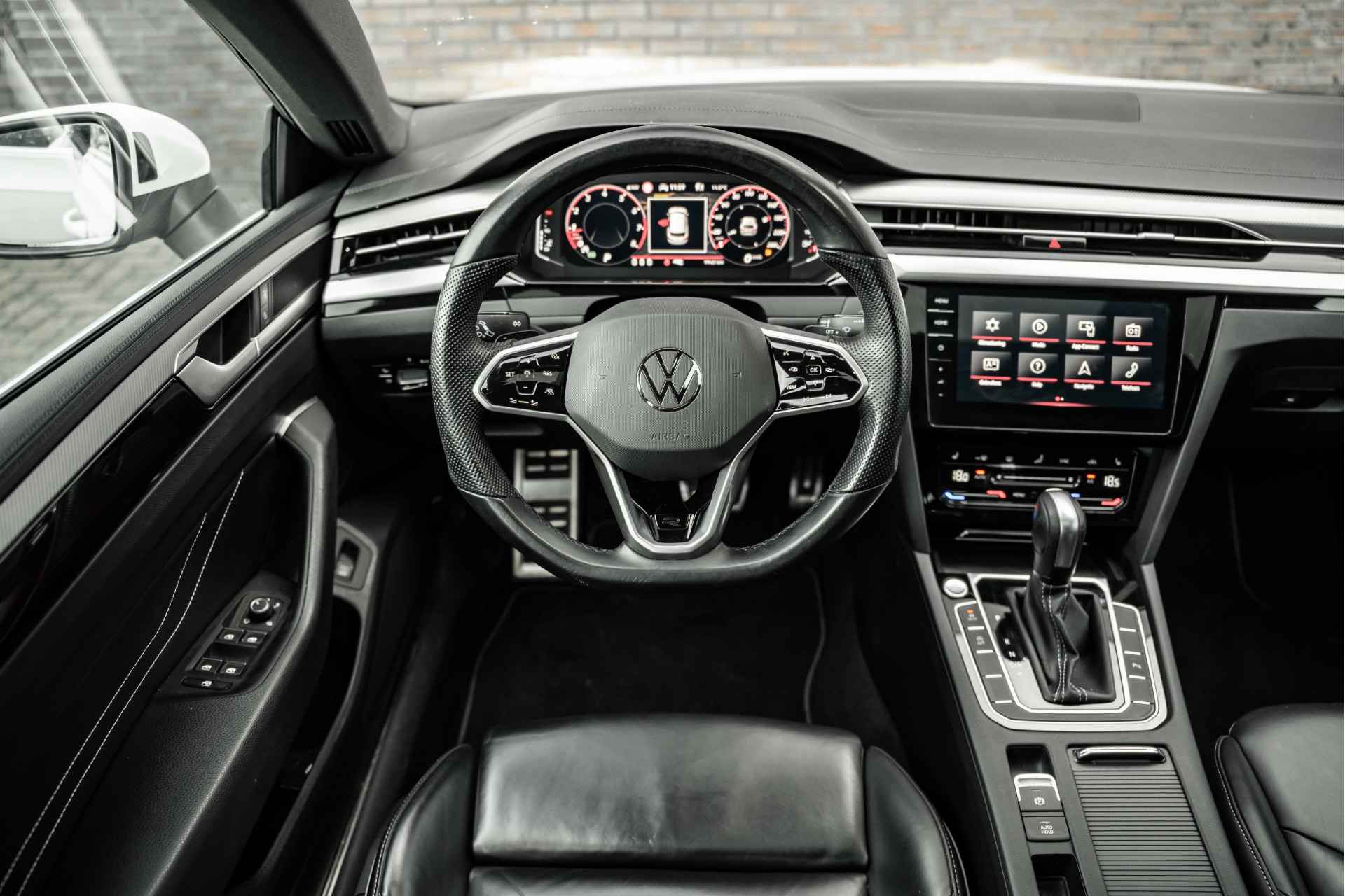 Volkswagen! Meer hoeven we eigenlijk niet te zeggen. De R-Line styling maakt deze Volkswagen Arteon Shooting Brake echt áf. Zoals het een echte Volkswagen betaamt, verkeert deze Arteon Shooting Brake in uitstekende conditie. Een zuinige benzinemotor en uitstekende prestaties, dat is wat deze Volkswagen aanbiedt. Ga samen met uw bijrijder lekker zitten in de verwarmbare voorstoelen en laat jullie bloedsomloop stimuleren door de massagefunctie. Zit u goed? Nou, zeker wel, met de comfortstoelen! Fun en functie wordt samengebracht in het elektrisch bedienbare glazen panoramadak. De elektrische achterklep opent met een druk op de knop, zodat u gemakkelijk toegang heeft tot de bagageruimte. Op gure dagen is het ook achterin heerlijk bijkomen op de verwarmde achterbank. De geavanceerde matrix LED-verlichting in de koplampen levert maximaal helder zicht en past zich subtiel aan zodra er een tegenligger komt. Zonder lichtkwaliteitsverlies! De uitmonstering van deze auto wordt gecompleteerd door onder meer 18 inch lichtmetalen velgen, warmtewerend glas, zwarte hemelbekleding, in delen neerklapbare achterbank, LED-achterlichten en verstelbare lendensteunen. In één oogopslag zijn alle vitale functies afleesbaar dankzij het digitale dashboard. Kom maar, kom maar, kom maar... ho! Prettig hoor, zo'n achteruitrijcamera. Als u de adaptive cruise control inschakelt, regelt de auto zelf de snelheid en de afstand tot de auto voor u. Met Connected Services wordt iedere rit nóg veiliger. Onderweg kunt u veilig genieten van het audio-installatiesysteem met DAB-radio en het full map navigatiesysteem. Want in deze Volkswagen bedient u ze vanaf het stuurwiel. De Volkswagen is standaard voorzien van: automatische airconditioning, schakelpaddles aan het stuur, regensensor, keyless entry, automatisch dimmende buitenspiegels en boordcomputer. De nieuwste veiligheidssystemen komen in deze Volkswagen Arteon Shooting Brake samen. Indien u onbedoeld de rijstrook lijkt te verlaten, reageert het Lane-keeping systeem meteen en corrigeert. Het forward collision warning-systeem is constant alert en detecteert via sensor de afstand tot voorliggers. Wordt die te klein, dan volgt een automatische waarschuwing. De veiligheidssystemen in deze auto nemen het zelfs waar als de bestuurder tekenen van vermoeidheid vertoont, en waarschuwen dan met een duidelijk signaal. De veiligheid van deze auto wordt verder verhoogd door hill hold functie, brake assist en bandenspanningcontrolesysteem. Een proefrit maken met deze Volkswagen Arteon Shooting Brake? Natuurlijk! Bel even voor een afspraak!