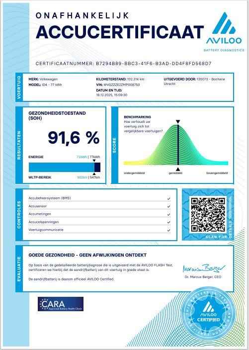 Milieubewust rijden en elke kilometer genieten. Het kan met deze elektrische Volkswagen ID.4. Het aantal kilometers dat u op een acculading kunt rijden, is ruimschoots genoeg voor de gangbare dagelijkse ritten, en het opladen kan in de meeste gevallen 's nachts gebeuren. Niet voor niets is de vraag naar gebruikte Volkswagens zo groot, want de kwaliteit staat ook na een aantal jaren nog buiten kijf, zoals aan deze ID.4 duidelijk te zien is. De verwarmbare voorstoelen zijn een heerlijke extra optie, waarmee u uzelf en uw bijrijder een groot plezier doet. Als u de stuurverwarming inschakelt, geniet u van weldadige warmte voor uw handen en vingers. Bij de uitrusting van deze Volkswagen horen onder meer 20 inch lichtmetalen velgen, LED koplampen, geluidsisolerende ramen, in delen neerklapbare achterbank, LED-achterlichten en verwarmde ruitensproeiers. 'Boem is ho'? Niet met deze achteruitrijcamera. U ziet achter net zo goed als voor en krijgt een duidelijk geluidssignaal! Adaptive cruise control is veilig en comfortabel. De snelheidsregelaar houdt automatisch afstand tot het voertuig dat voor u rijdt. Bij deze auto is uw smartphone een geavanceerde afstandsbediening. Remote services brengen u overal in contact met uw auto. Onderweg kunt u veilig genieten van het audiosysteem met DAB-radio en het navigatiesysteem. Want in deze Volkswagen bedient u ze vanaf het stuurwiel of met uw stem. De kans op een kop-staart botsing wordt sterk gereduceerd door het systeem van achteropkomend verkeer waarschuwing. Met automatische airconditioning, regensensor, automatisch dimmende binnenspiegel en centrale deurvergrendeling met afstandsbediening is deze auto helemaal compleet. U geniet nog meer van het rijden met uw Volkswagen omdat u wordt beschermd door intelligente veiligheidssystemen. In het instrumentarium kunt u bovendien de verkeersborden zien die u onderweg tegenkomt. Zo helpt deze Volkswagen u om veiliger te rijden. Deze Volkswagen ID.4 is ook behulpzaam als het gaat om een rechte koers. Het Lane-keeping systeem signaleert en corrigeert als u onbedoeld de rijstrooklijnen dreigt te overschrijden. Het risico van een kop-staartbotsing wordt aanzienlijk verminderd door de forward collision warning. Bovenop deze veiligheidsfeatures heeft deze Volkswagen bovendien hill hold functie, vermoeidheidsherkenning, autonoom remsysteem en bandenspanningcontrolesysteem. Een proefrit? Natuurlijk! Neem contact op en we maken een afspraak om u te overtuigen van deze kwaliteitsauto! Wilt u meer weten over deze auto of een afspraak voor bezichtiging maken, bel  ons dan voor een afspraak op 030-2611122. De verkoopprijs van deze auto is inclusief een geldige APK. De auto wordt op uw naam overgeschreven en heeft tevens een pre inspectie en vloeistofcontrole gehad. Een onderhoud en garantiepakket met 12 maanden Bovag garantie bieden wij aan voor een meerprijs van 795 euro.  De bovenstaande informatie is met zorg samengesteld. Er kunnen echter geen rechten aan worden ontleend. Type-, zet- en spelfouten voorbehouden. Wijzigingen zijn te allen tijde mogelijk zonder voorafgaande kennisgeving. Kopers kunnen geen aanspraak maken op ontbrekende opties of specificaties die de koop zouden kunnen beïnvloeden.    Bochane Utrecht Occasions behoort tot de in de regio welbekende Bochane Groep. Er staat voor ieder merk een vakkundig team klaar voor u! Dat betekent dat u verzekerd bent van een schat aan ervaring, kennis en de hoogst denkbare service.   Graag tot ziens bij Bochane in Utrecht!