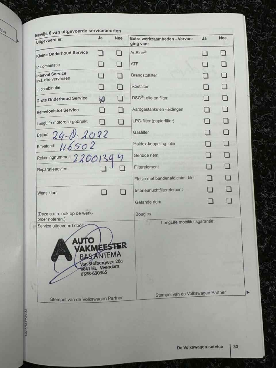 • Onderhoudsboekjes