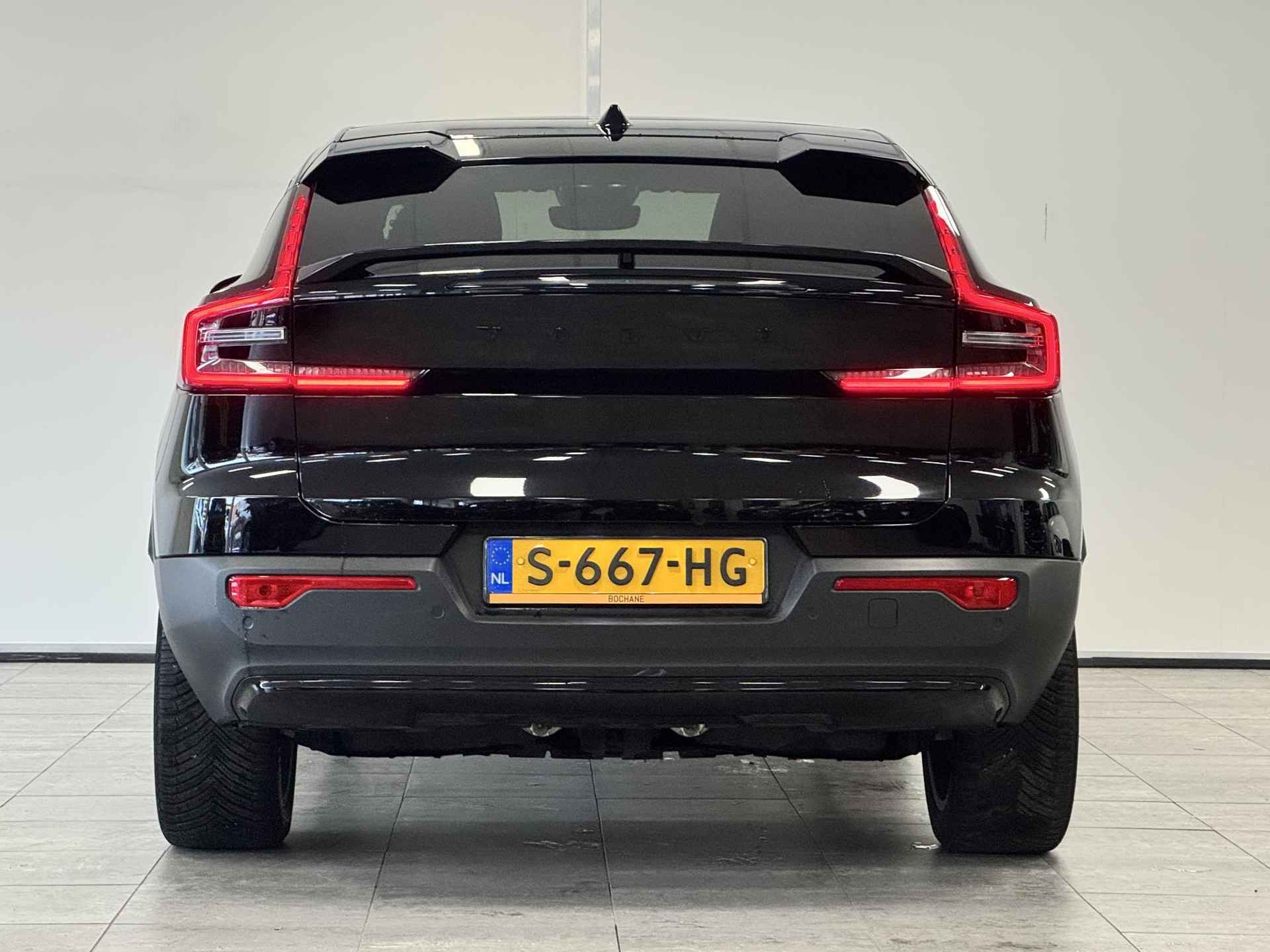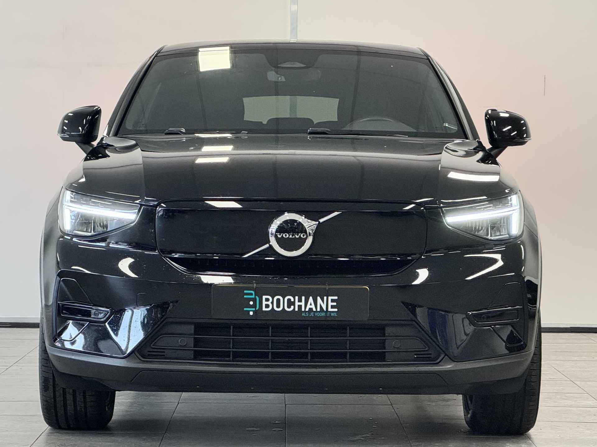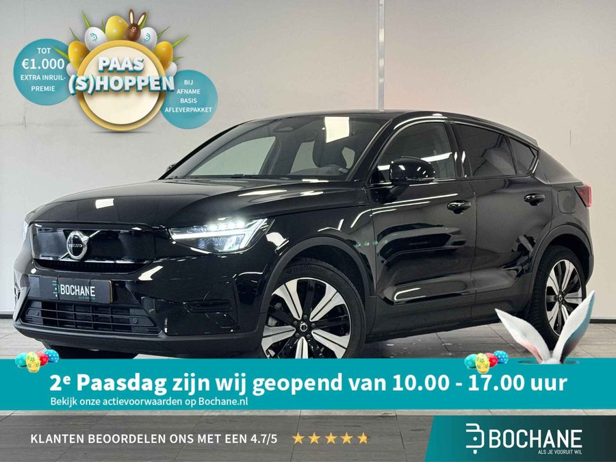 Hij levert uitstekende prestaties en doet dat met zorg voor het milieu. Maar tegelijk is de Volvo C40 ook gewoon een auto die u volop ruimte en comfort biedt. Bent u ook toe aan een auto met elektromotor? Goeie keuze! Een ommetje of een lange trip? De comfortstoelen zorgen elke keer voor een goede zithouding! De bagageruimte is toegankelijk via een comfortverhogende elektrische achterklep. In weer en wind een cabriosensatie? Dat kan met het riante glazen panoramadak. Ook 19 inch lichtmetalen velgen, LED koplampen, in delen neerklapbare achterbank, LED-achterlichten, verstelbare lendensteunen en snelheidsafhankelijke stuurbekrachtiging zijn aan boord. Dankzij het digitale dashboard leest u alle benodigde info gemakkelijk en overzichtelijk af. Wat een gemak, die achteruitrijcamera. Alles in beeld zonder capriolen. Connected Services zorgen ervoor dat de belangrijkste functies en data van de auto altijd en overal te checken zijn. Gewoon via de app op de smartphone. Sublaag en tophoog... en alles daartussenin! Het high performance audiosysteem kan elke frequentie moeiteloos aan. Extra makkelijk is de draadloze telefoonlader. Ook is de Volvo uitgerust met: dashboard met spraakbediening, full map navigatiesysteem, achteropkomend verkeer waarschuwing, kruisend verkeer detectie, electronic climate control en DAB ontvangst. Het zal u verbazen hoe deze auto in staat is om voor u de omgeving en het verkeer om u heen in de gaten te houden. De actuele snelheidslimiet, een inhaalverbod en andere verkeersborden; de verkeersborddetectie ondersteunt u tijdens elke rit. Deze Volvo C40 is ook behulpzaam als het gaat om een rechte koers. Het Lane-keeping systeem signaleert en corrigeert als u onbedoeld de rijstrooklijnen dreigt te overschrijden. Forward collision warning waarschuwt bij een dreigende aanrijding met een voorligger. Dankzij veiligheidsvoorzieningen als hill hold functie, brake assist, vermoeidheidsherkenning en bandenspanningcontrolesysteem, bent u steeds veilig onderweg. Nergens vindt u zoveel oplaadpalen als hier, bij ons. Alle reden om te kiezen voor elektrisch rijden. Overtuig uzelf met een proefrit en maak vandaag nog een afspraak! Wilt u meer weten over deze auto of een afspraak voor bezichtiging maken, bel  ons dan voor een afspraak op 030-2611122. De verkoopprijs van deze auto is inclusief een geldige APK. De auto wordt op uw naam overgeschreven en heeft tevens een pre inspectie en vloeistofcontrole gehad. Een onderhoud en garantiepakket met 12 maanden Bovag garantie bieden wij aan voor een meerprijs van 795 euro.  De bovenstaande informatie is met zorg samengesteld. Er kunnen echter geen rechten aan worden ontleend. Type-, zet- en spelfouten voorbehouden. Wijzigingen zijn te allen tijde mogelijk zonder voorafgaande kennisgeving. Kopers kunnen geen aanspraak maken op ontbrekende opties of specificaties die de koop zouden kunnen beïnvloeden.    Bochane Utrecht Occasions behoort tot de in de regio welbekende Bochane Groep. Er staat voor ieder merk een vakkundig team klaar voor u! Dat betekent dat u verzekerd bent van een schat aan ervaring, kennis en de hoogst denkbare service.   Graag tot ziens bij Bochane in Utrecht!