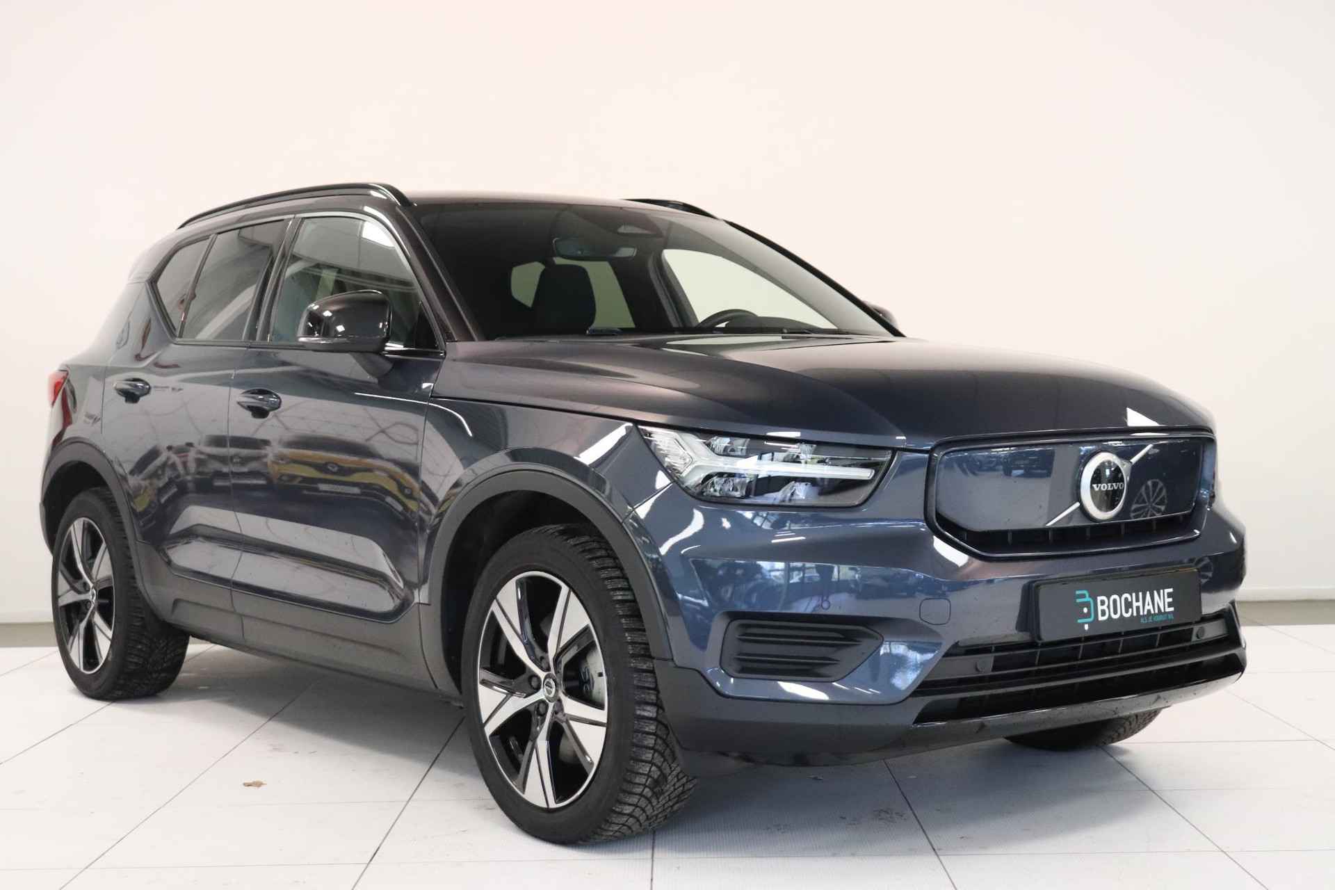 Kijk naar de onvergelijkbare vormgeving. De Volvo XC40 is een elektrische auto die zijn bijzondere karakter niet voor de buitenwereld verbergt. De fluisterstille elektromotor zorgt voor pittige rijprestaties zonder uitstoot. Maar wel met fiscaal voordeel! Behaaglijk onderweg zijn? Als bestuurder geniet u van de verwarmbare voorstoelen. Net als uw bijrijder! De elektrisch bedienbare achterklep opent met een druk op de knop. Koude handen? Da's voorbij met het verwarmd stuurwiel. Pak aan! In deze Volvo profiteert u onder andere ook van: 19 inch lichtmetalen velgen, LED koplampen, extra getint glas, in delen neerklapbare achterbank, LED-achterlichten en verstelbare lendensteunen. Ontdek de digitale mobiliteitswereld, met zijn dashboard dat alle noodzakelijke informatie projecteert om uw reis comfortabel en veilig te maken. Zelfs een kleine aanrijding kan flinke kosten veroorzaken. Gelukkig laat de achteruitrijcamera precies zien wat er zich achter de auto bevindt en geeft een waarschuwingssignaal. Adaptive cruise control is veilig en comfortabel. De snelheidsregelaar houdt automatisch afstand tot het voertuig dat voor u rijdt. De elektrisch inklapbare trekhaak blijft mooi uit het zicht als u hem niet gebruikt. Functies activeren en storingen opsporen? Bij deze auto gaat het eenvoudig via uw smartphone. Overal en altijd. Met dashboard met spraakbediening, full map navigatiesysteem, achteropkomend verkeer waarschuwing, kruisend verkeer detectie, electronic climate control en draadloos opladen is deze auto helemaal compleet. De nieuwste veiligheidssystemen komen in deze Volvo XC40 samen. De camera van de verkeersborddetectie herkent verschillende soorten verkeersborden en toont deze op het dashboard. Met het Lane-keeping systeem komt u nooit per ongeluk buiten de rijstrook. Deze Volvo XC40 blijft altijd alert. Zo wordt gebruik gemaakt van forward collision warning. Bij het mogelijke risico op een aanrijding met een voertuig voor u, slaat het systeem alarm. De auto is ook uitgerust met hill hold functie, brake assist, vermoeidheidsherkenning en bandenspanningcontrolesysteem. Dit is het moment om te switchen naar elektrisch rijden. Gaat u mee? Bel nu voor een afspraak en maak een proefrit! Wilt u meer weten over deze auto of een afspraak voor bezichtiging maken, bel ons dan voor een afspraak op 026-2001167. De verkoopprijs van deze auto is inclusief een geldige APK. De auto wordt op uw naam overgeschreven en heeft tevens een pre inspectie en vloeistofcontrole gehad. Een onderhoud en garantiepakket met 12 maanden Bovag garantie bieden wij aan voor een meerprijs van 795 euro. De bovenstaande informatie is met zorg samengesteld. Er kunnen echter geen rechten aan worden ontleend. Type-, zet- en spelfouten voorbehouden. Wijzigingen zijn te allen tijde mogelijk zonder voorafgaande kennisgeving. Kopers kunnen geen aanspraak maken op ontbrekende opties of specificaties die de koop zouden kunnen beïnvloeden. Autobedrijf Jan van Mourik in Arnhem, Utrecht, Geldermalsen en Culemborg behoort tot de in de regio welbekende Bochane Groep. Er staat voor ieder merk een vakkundig team klaar voor u! Dat betekent dat u verzekerd bent van een schat aan ervaring, kennis en de hoogst denkbare service. Graag tot ziens bij Jan van Mourik & Zn in Arnhem!
