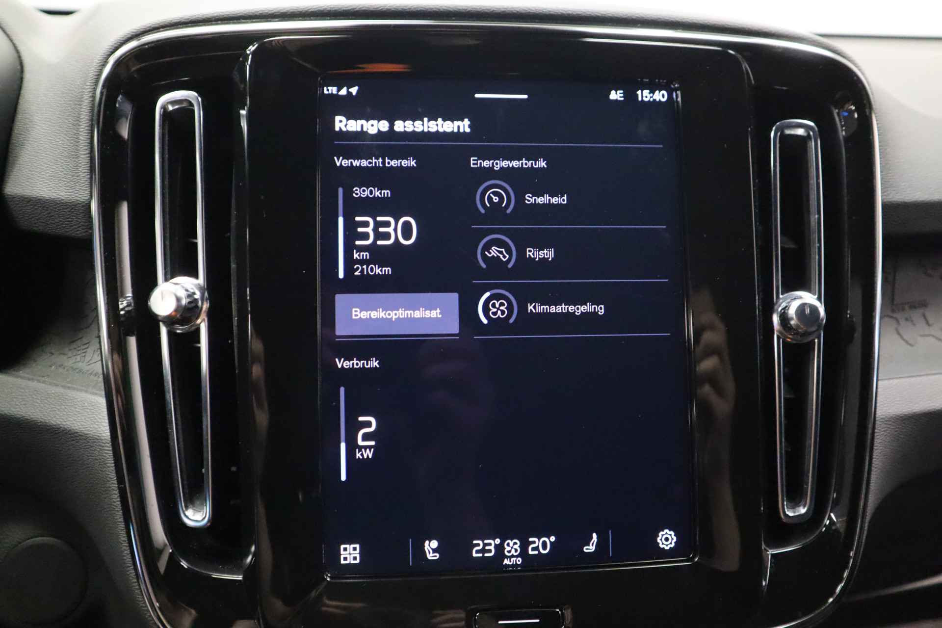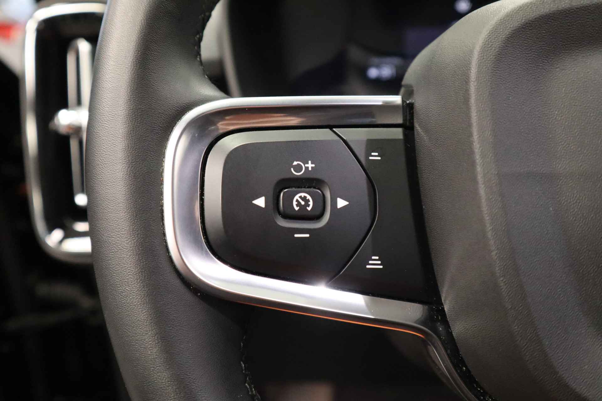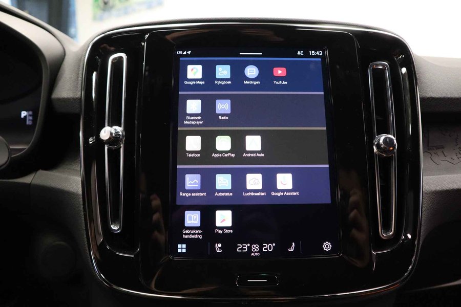 'Volvo for life', zeggen ze. En heel veel Volvo-rijders zijn het daar roerend mee eens. Eenmaal kiezen voor dit Zweedse icoon is vaak een levenslange keuze. De elektromotor laat u geluidloos over de weg gaan. Wat een verademing, en zoveel power ook nog! Een krachtige motor geeft deze auto zijn sportieve prestaties. Ervaar de weldadige warmte van de inschakelbare stoelverwarming. Met een druk op de knop gaat de elektrische achterklep open. Ook 20 inch lichtmetalen velgen, LED koplampen, donker getint glas achter, in delen neerklapbare achterbank, LED-achterlichten en verstelbare lendensteunen horen tot de voorzieningen op deze auto. Verken de digitale wereld van mobiliteit waar het digitale dashboard alles biedt wat u nodig heeft om uw reis comfortabel te maken. Met behulp van de achteruitrijcamera kunt u zo strak inparkeren als u maar wilt! Als u de adaptive cruise control inschakelt, regelt de auto zelf de snelheid en de afstand tot de auto voor u. Gemak dient de mens. Dankzij de spraaksturing bedient u de belangrijkste functie met uw stem. Zoals u van zo'n jonge auto mag verwachten, zijn hier ook de geavanceerde remote services aanwezig. Simpelweg met een app op uw smartphone controleert u op afstand de status van de auto en bedient u diverse functies. De uitrusting van deze Volvo is met full map navigatiesysteem, WIFI-hotspot, achteropkomend verkeer waarschuwing, kruisend verkeer detectie, electronic climate control en draadloos opladen behoorlijk compleet. De Volvo XC40 is uw trouwe partner onderweg, want hij houdt continu voor u de situatie op en om de weg in de gaten. Volautomatische veiligheidssystemen kunnen daarbij ingrijpen om u voor gevaarlijke situaties te behoeden. Tijdens de rit hebt u altijd een bijrijder, want de verkeersbord-detectie leest de borden langs de weg en projecteert ze voor u op het instrumentarium. Het Lane-keeping systeem zorgt dat u mooi binnen de lijntjes blijft. Ongemerkt buiten de rijstrook komen is er niet meer bij. Elke auto heeft een of meer blinde vlekken. De actieve dodehoekdetectie waarschuwt als er gevaar voor een aanrijding bestaat. Bovenop deze veiligheidsfeatures heeft deze Volvo bovendien forward collision warning system, hill hold functie, brake assist, vermoeidheidsherkenning en bandenspanningcontrolesysteem. Elektrisch rijden ervaren? Neem contact op en maak een afspraak voor een proefrit.