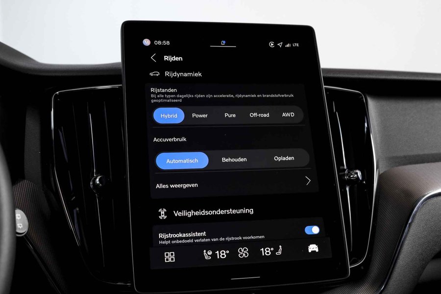 Volvo XC60 2.0 T8 Plug-in hybrid AWD Plus Black Edition – Facelift MY26 onderscheidt zich door een combinatie van extra comfort, moderne technologie en een krachtige maar ingetogen uitstraling. De Black Edition is te herkennen aan de volledig zwarte accenten en de lichtmetalen velgen 21”, wat de auto een sportieve en verzorgde uitstraling geeft die goed past bij het karakter van de XC60. De Plus-uitvoering voegt merkbaar comfort toe. Zo is de auto uitgerust met elektrisch verstelbare stoelen met geheugen, waarbij zowel de bestuurdersstoel als passagiersstoel elektrisch verstelbaar zijn met geheugenfunctie. Voor extra comfort zijn de voorstoelen in hoogte verstelbaar en verwarmd, is ook de achterbank verwarmd, en beschikt de auto over een stuurwielverwarming. Het volledig digitale instrumentenpaneel in combinatie met het navigatiesysteem van Google Maps zorgt voor een moderne en overzichtelijke rijervaring. Daarnaast is deze uitvoering rijk uitgerust met praktische en luxe voorzieningen zoals Apple CarPlay/Android Auto, adaptieve cruise control met stop & go en stuurhulp, verkeersborddetectie, vermoeidheidsherkenning, dodehoekdetectie met correctie, uitwijk assistent en uitparkeer waarschuwing. Parkeren wordt eenvoudiger dankzij de parkeersensoren voor en achter in combinatie met de camera rondomzicht en achteruitrijcamera. Ook aan gebruiksgemak is gedacht, met onder andere een elektrisch bedienbare achterklep met sensorsturing, draadloze telefoonlader, electronic climate control, LED koplampen, DAB-radio, dakrails en het elektrisch glazen panorama-dak. Het geheel wordt compleet gemaakt door de Harman/Kardon premium audio-installatie, die zorgt voor een hoogwaardige geluidsbeleving. Samen maken deze eigenschappen de Plus Black Edition tot een zeer complete en comfortabele uitvoering, met een duidelijke focus op kwaliteit, technologie en dagelijks gebruiksgemak.